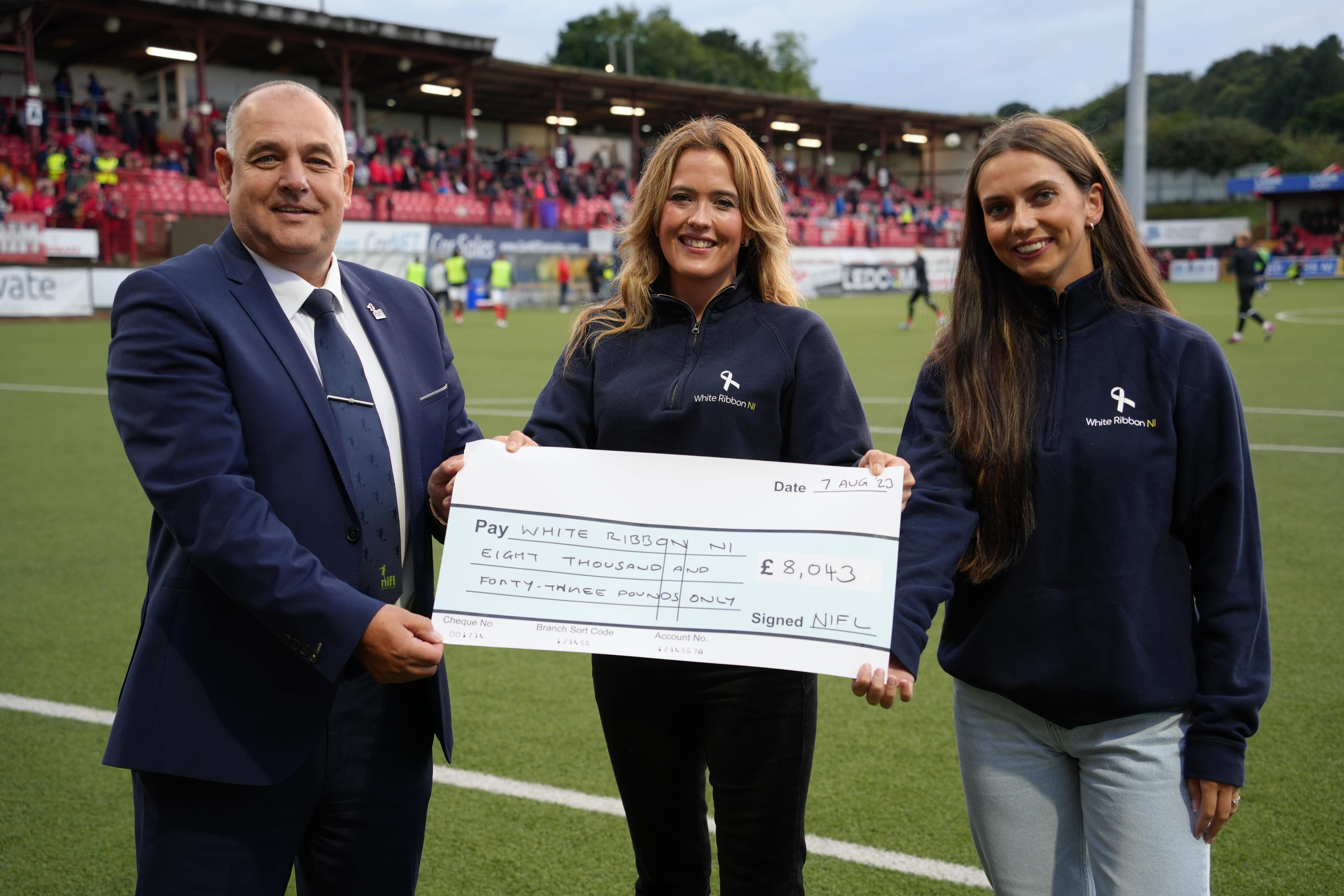 The NI Football League were delighted to present representatives of White Ribbon NI with a cheque for £8,043 on Monday evening from the proceeds of th...