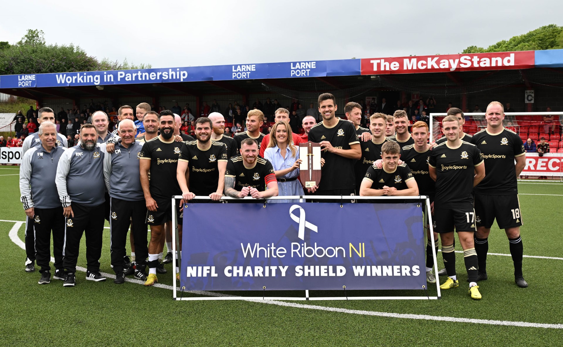 Cup winners Crusaders impressively saw off league champions Larne 2-0 in the White Ribbon NI Charity Shield final at Inver Park. Following a rather sl...
