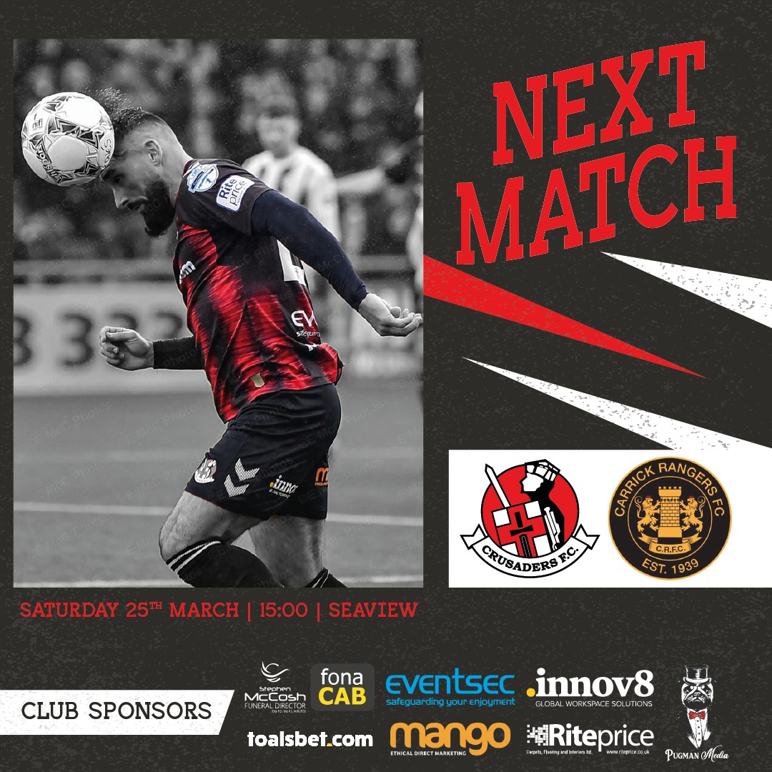 It's the last fixture before the split in the Danske Bank Premiership and Carrick Rangers come to Seaview for that game on Saturday (3pm) Place positi...