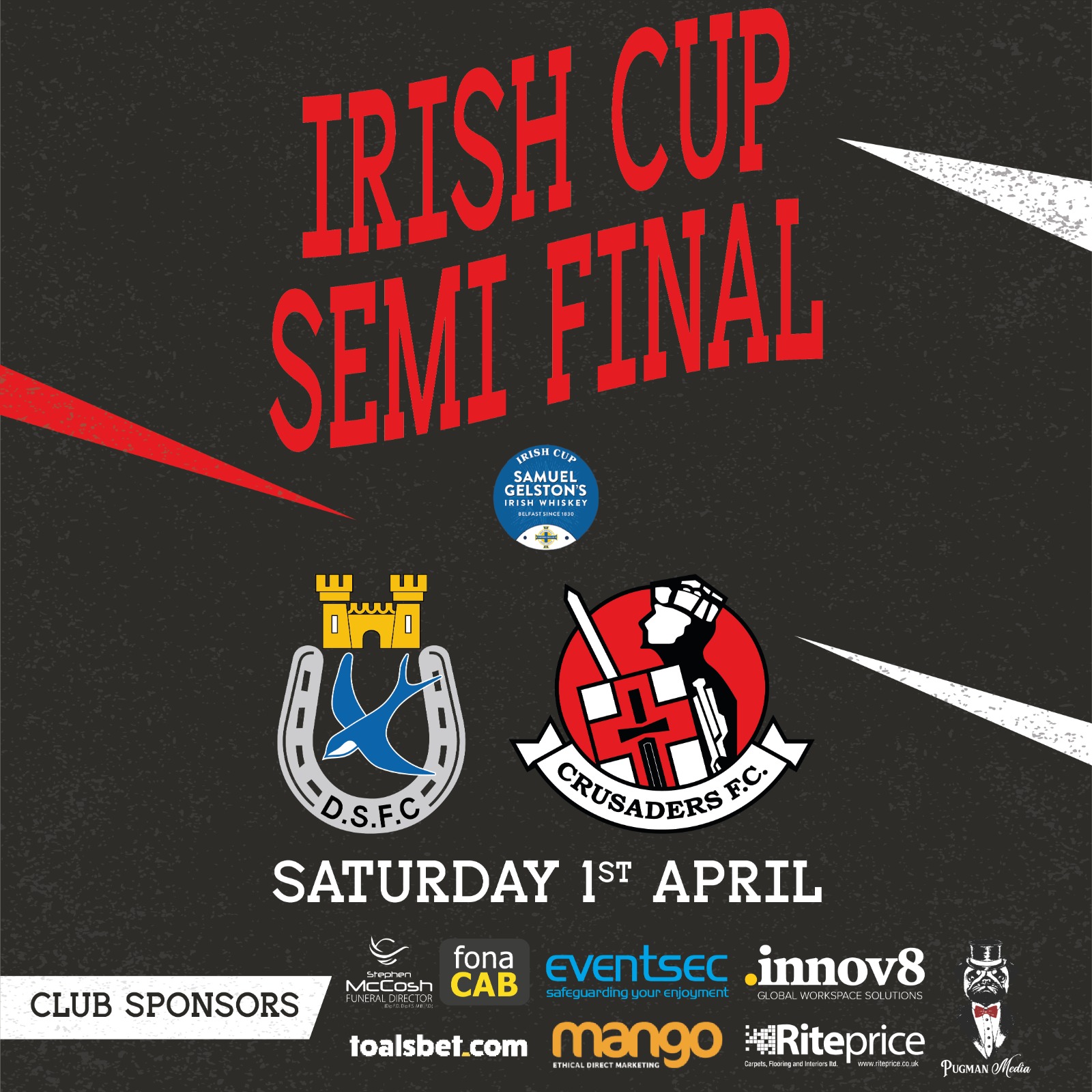Tickets for the Samuel Gelstons Irish Whiskey Irish Cup Semi Final between Dungannon Swifts and Crusaders are now on general sale via the following li...