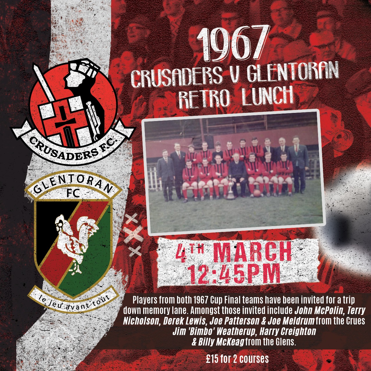 Have you bought your ticket yet for the 1967 Retro Lunch at Seaview this Saturday before the Irish Cup Quarter Final?If not you will need to buy as so...