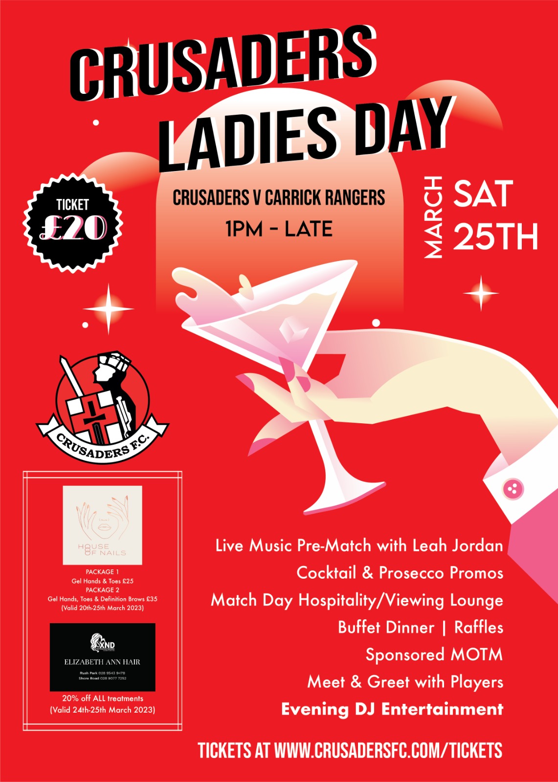 One for the diary later this month and what a day we have in store.The Crusaders Ladies Day returns for the first time in a few years and we are looki...