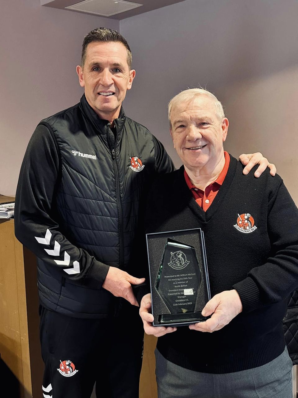 Congratulations to Billy McCord on celebrating his 50th year as a member of the North Belfast Crusaders Supporters Club.The supporters club had a lunc...