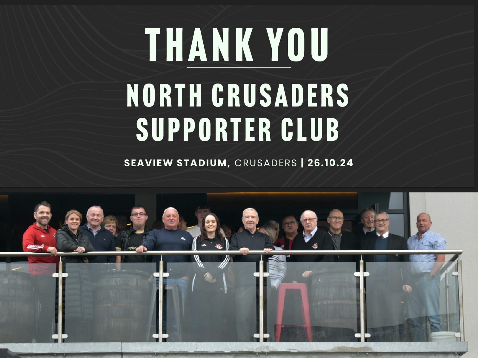 A massive thank you to the North Belfast Crusaders Supporters Club for their continued sponsorship of Crusaders. Your donations have been greatfully r...