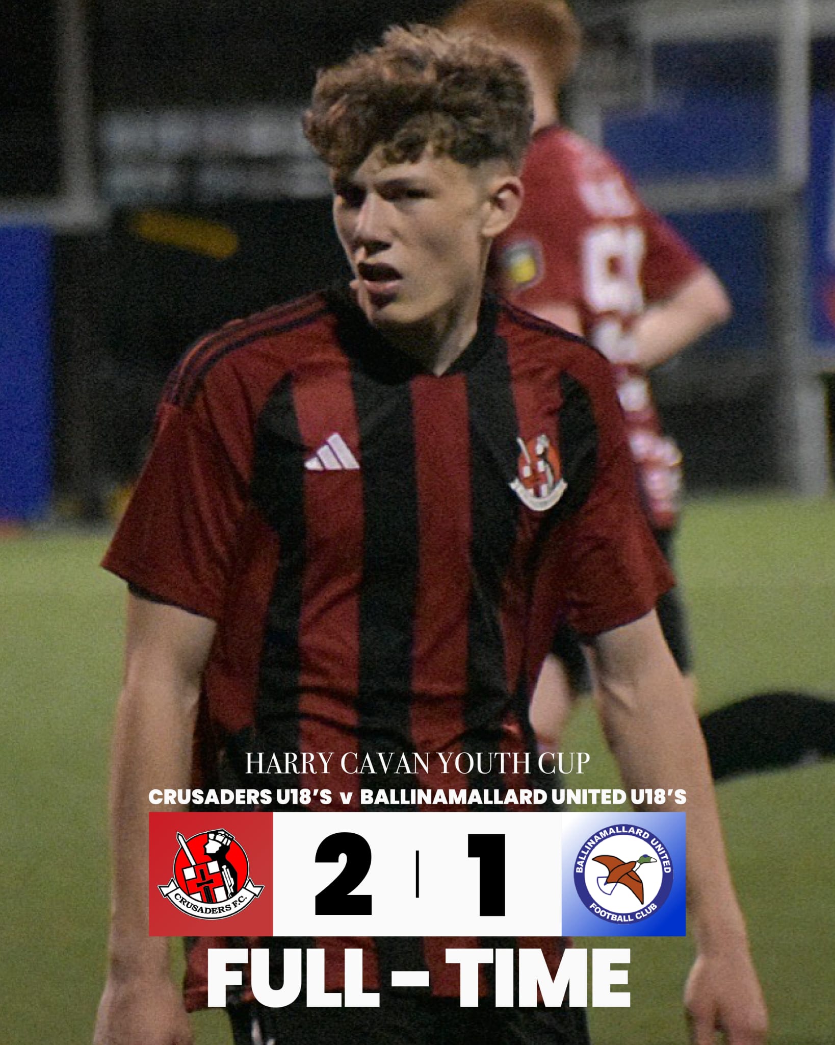 Crusaders U18's tonight are through to the Harry Cavan Youth Cup 3rd Round after two late goals secured the win against Ballinamallard United U18's at...