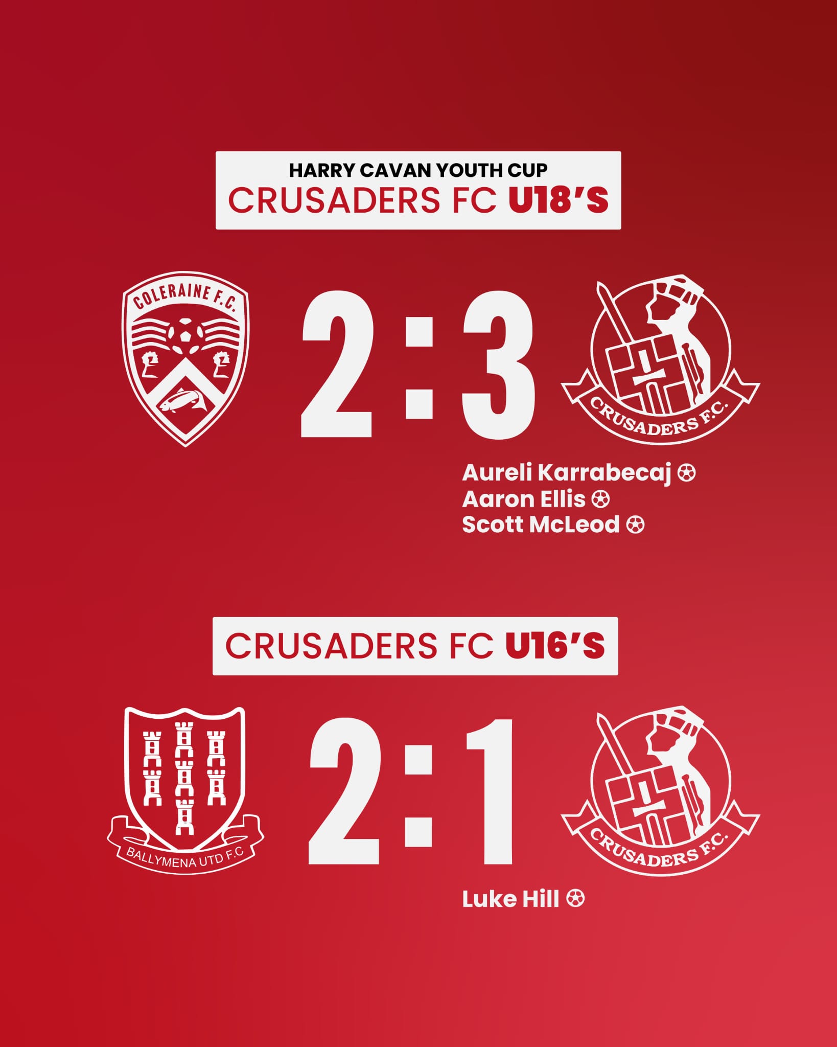 On Saturday past both Academy sides where in action in different competitions.Crusaders U18's progressed in the Harry Cavan Youth Cup that saw the tie...