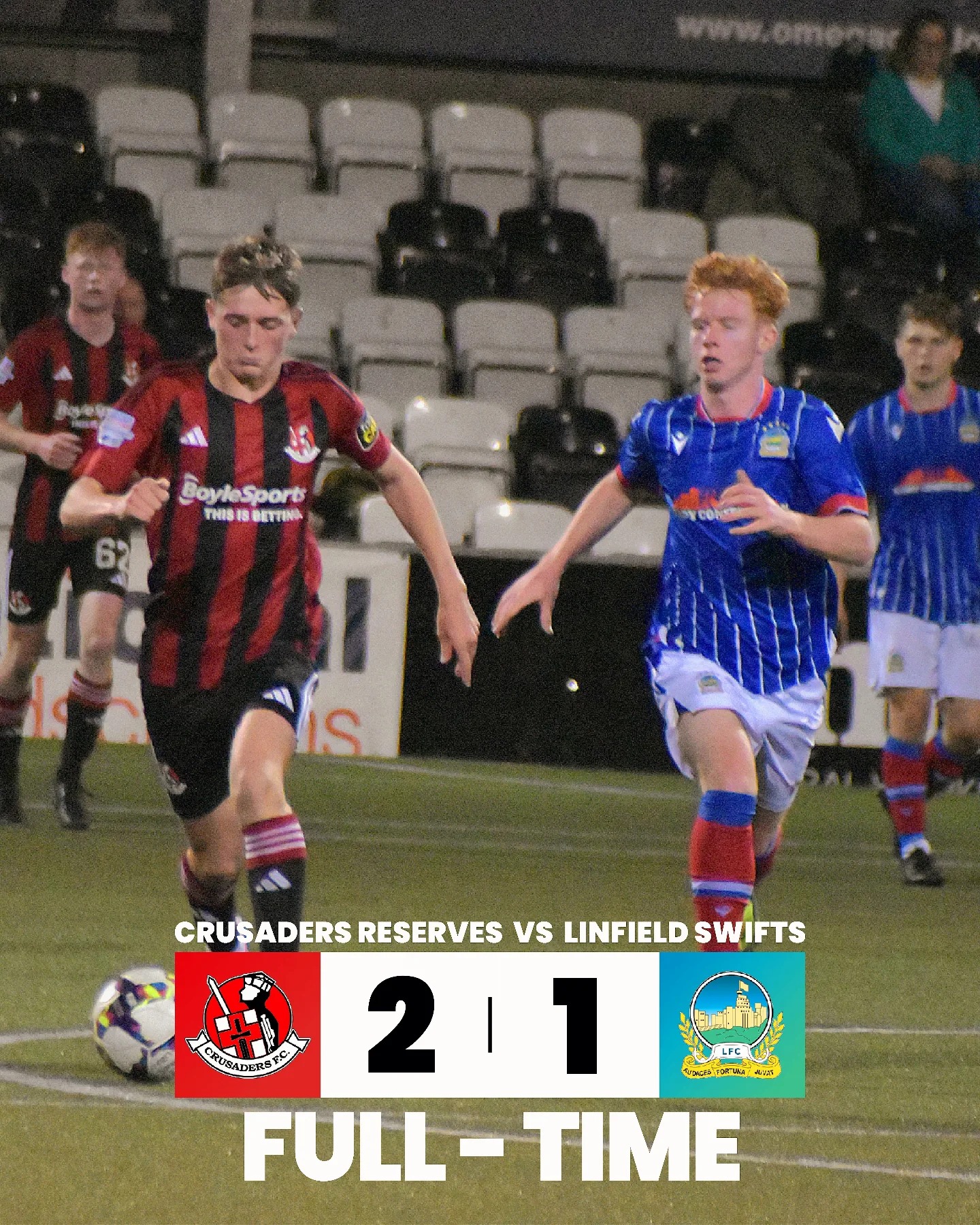 Crusaders Reserves moved to the top of the Premiership Development League tonight after a superb 2-1 win over Linfield Swifts at Seaview. It was secon...