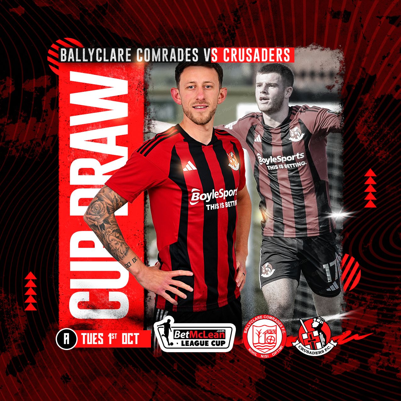 Crusaders have been drawn to play Ballyclare Comrades at Dixon Park in the BetMcLean League Cup 1st Round.The tie will be played on Tuesday 1st Octobe...