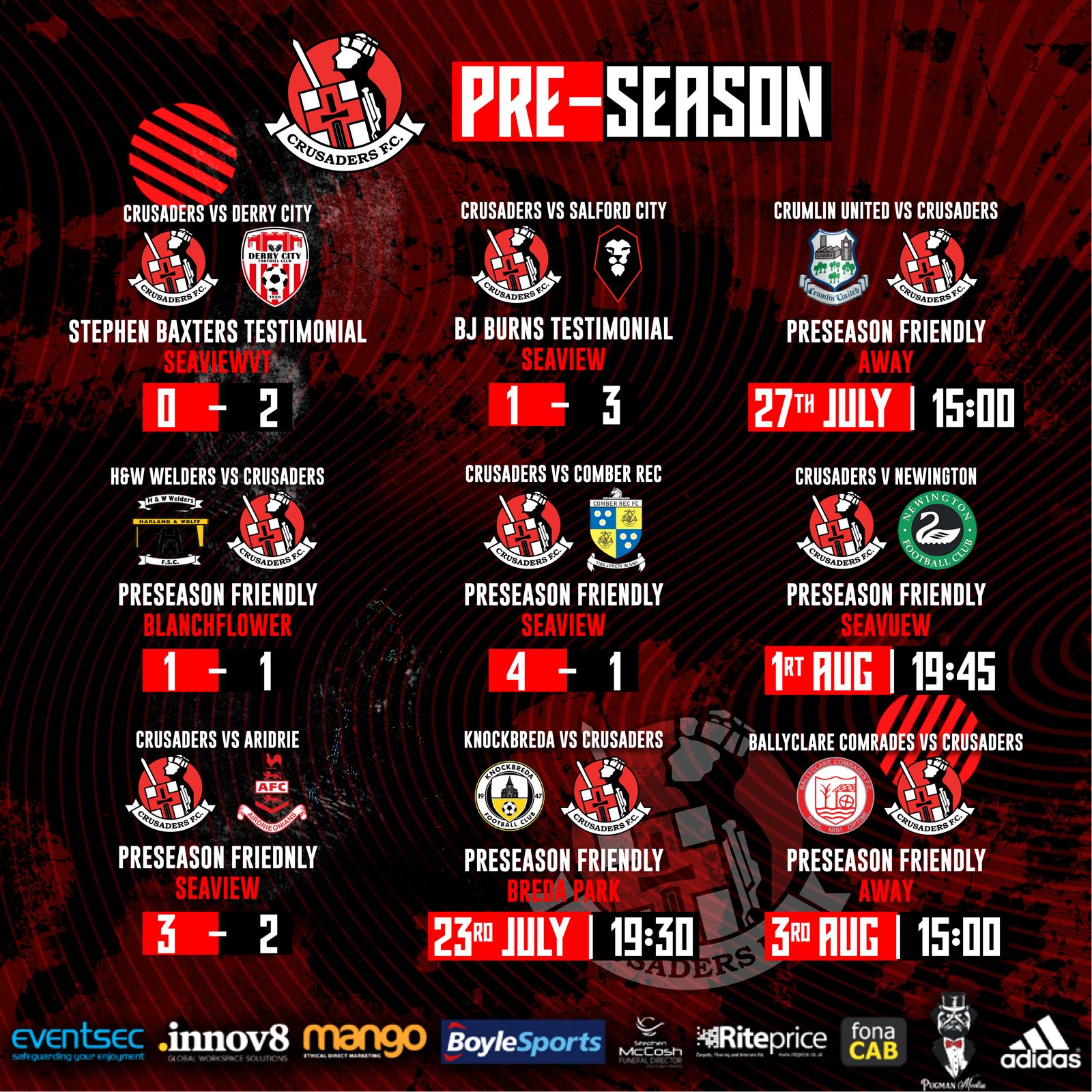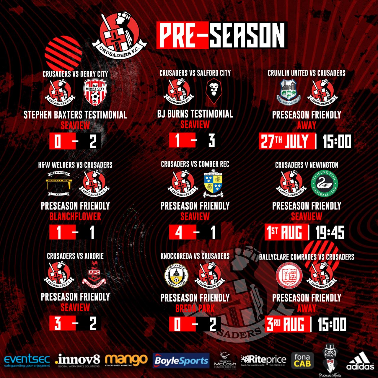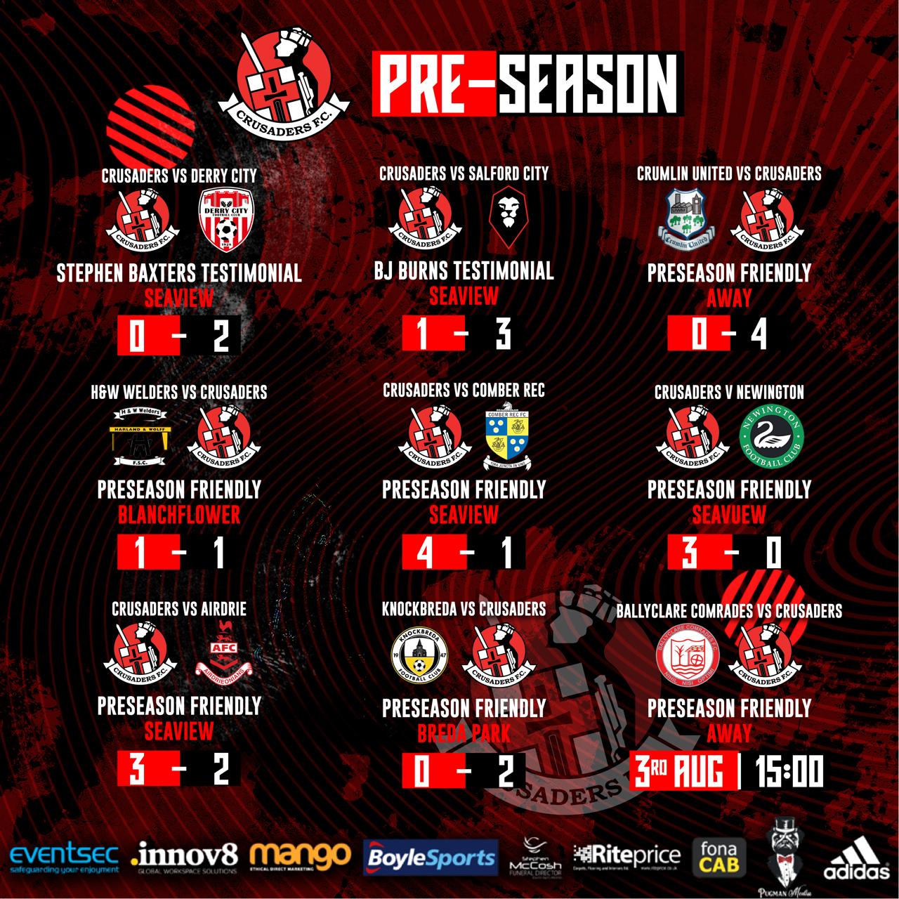 Crusaders are on the road on Saturday when they head off to Crumlin to play Crumlin United at Tom McPeake Park, Mill Road. It is the latest pre season...