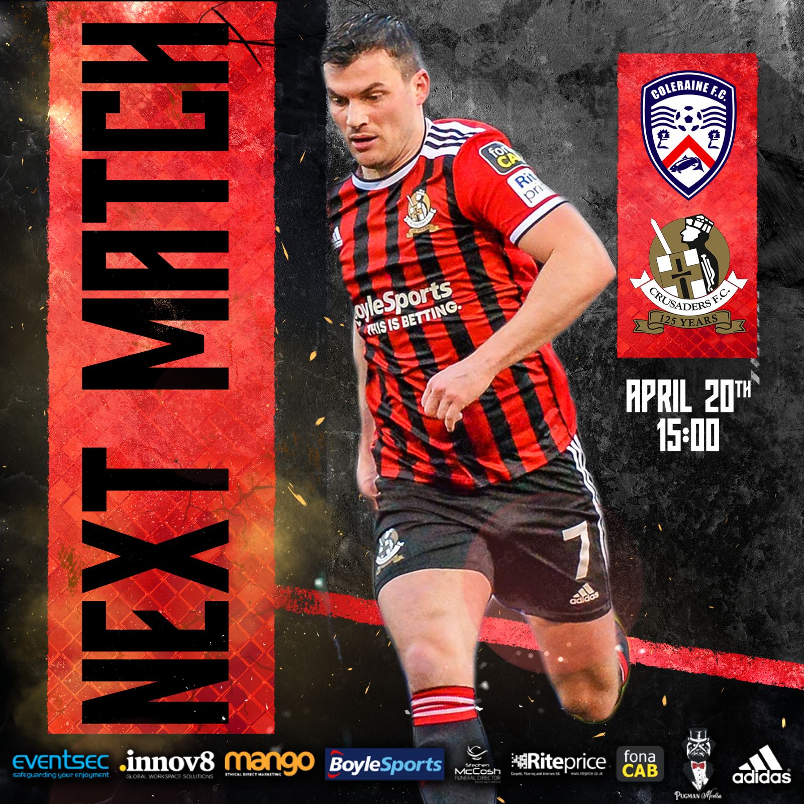 It is the penultimate game of the Sports Direct Premiership before the play offs and Crusaders go to the Coleraine Showgrounds (20th) to play Colerain...