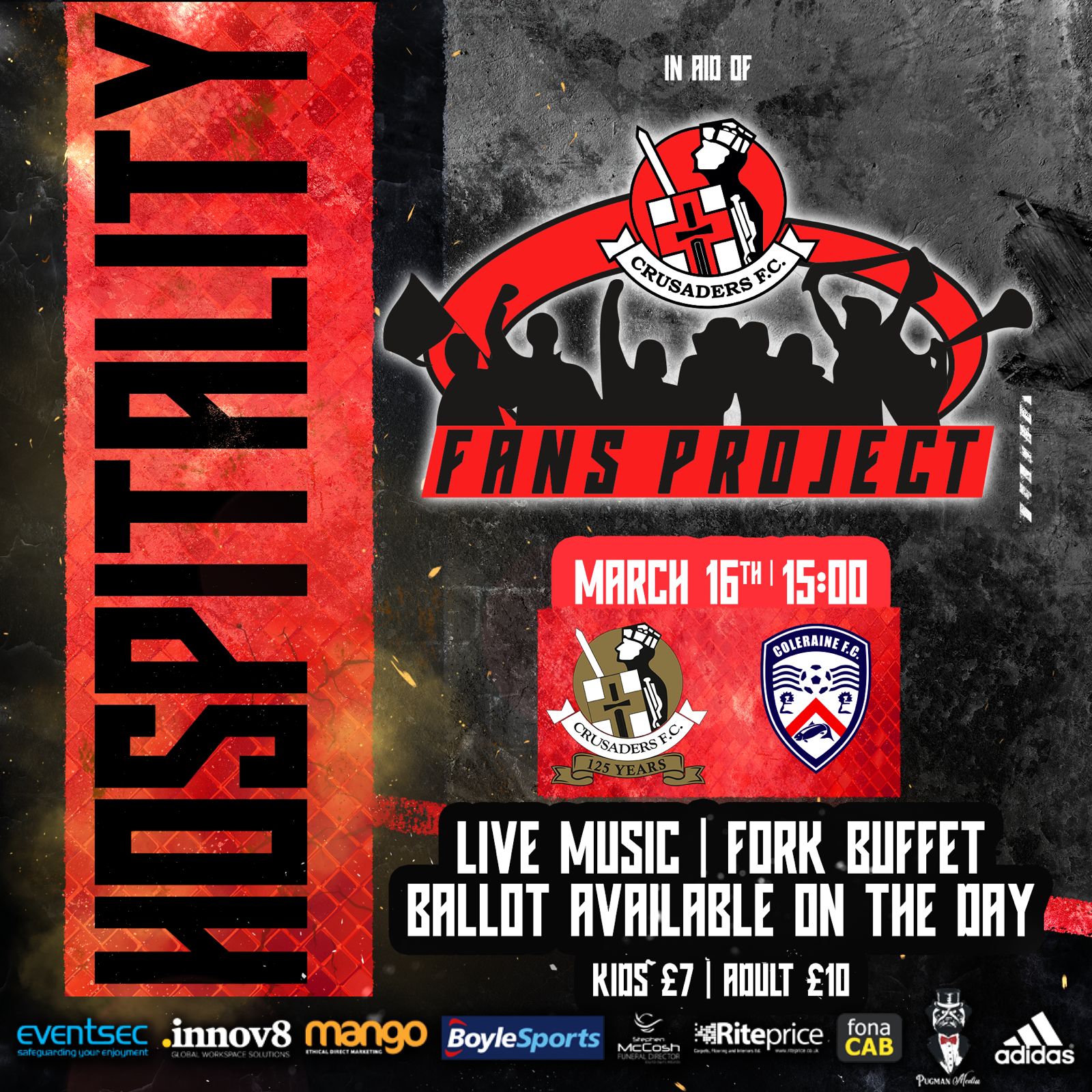 This Saturday we have a special pre-match hospitality event in aid of the Crusaders Fans Project.Come join us from 12.30pm for reserved tables, drinks...