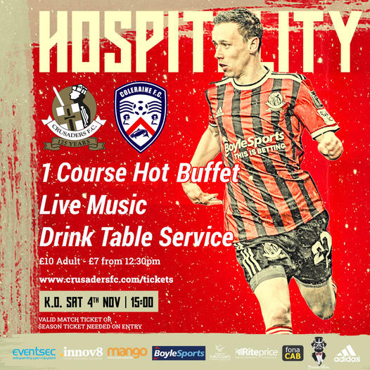 Get your hospitality tickets for this weekends game against Coleraine at the link.You'll get a multi-option one course buffet, drinks table service fr...