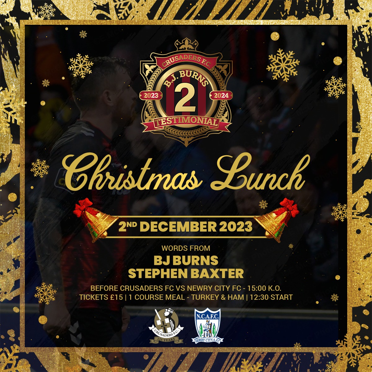 Join us for the kickoff of Billy Joe Burns' testimonial year with a festive luncheon on Saturday, December 2nd, just before the Newry match at Seaview...