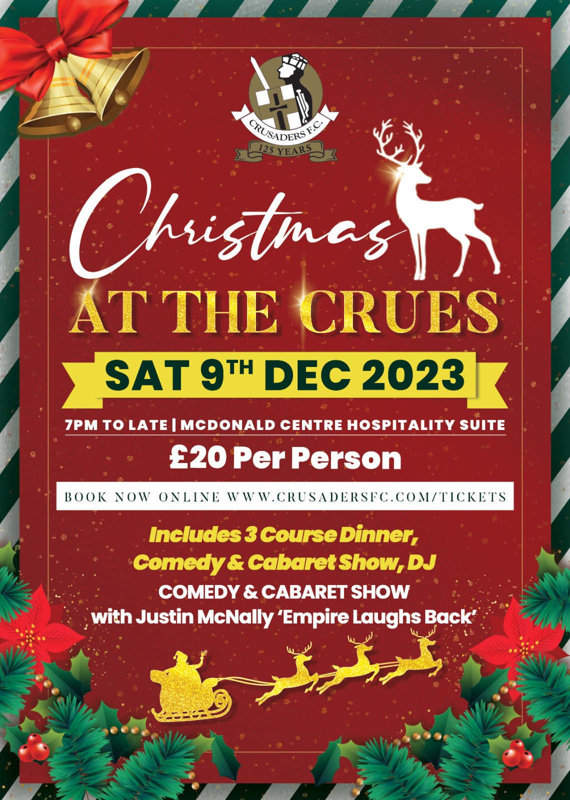 CHRISTMAS AT THE CRUESSaturday 9th December 20237pm to Late | McDonald Centre Hospitality SuiteIncludes: 3 Course Xmas Dinner | Comedy & Cabaret S...
